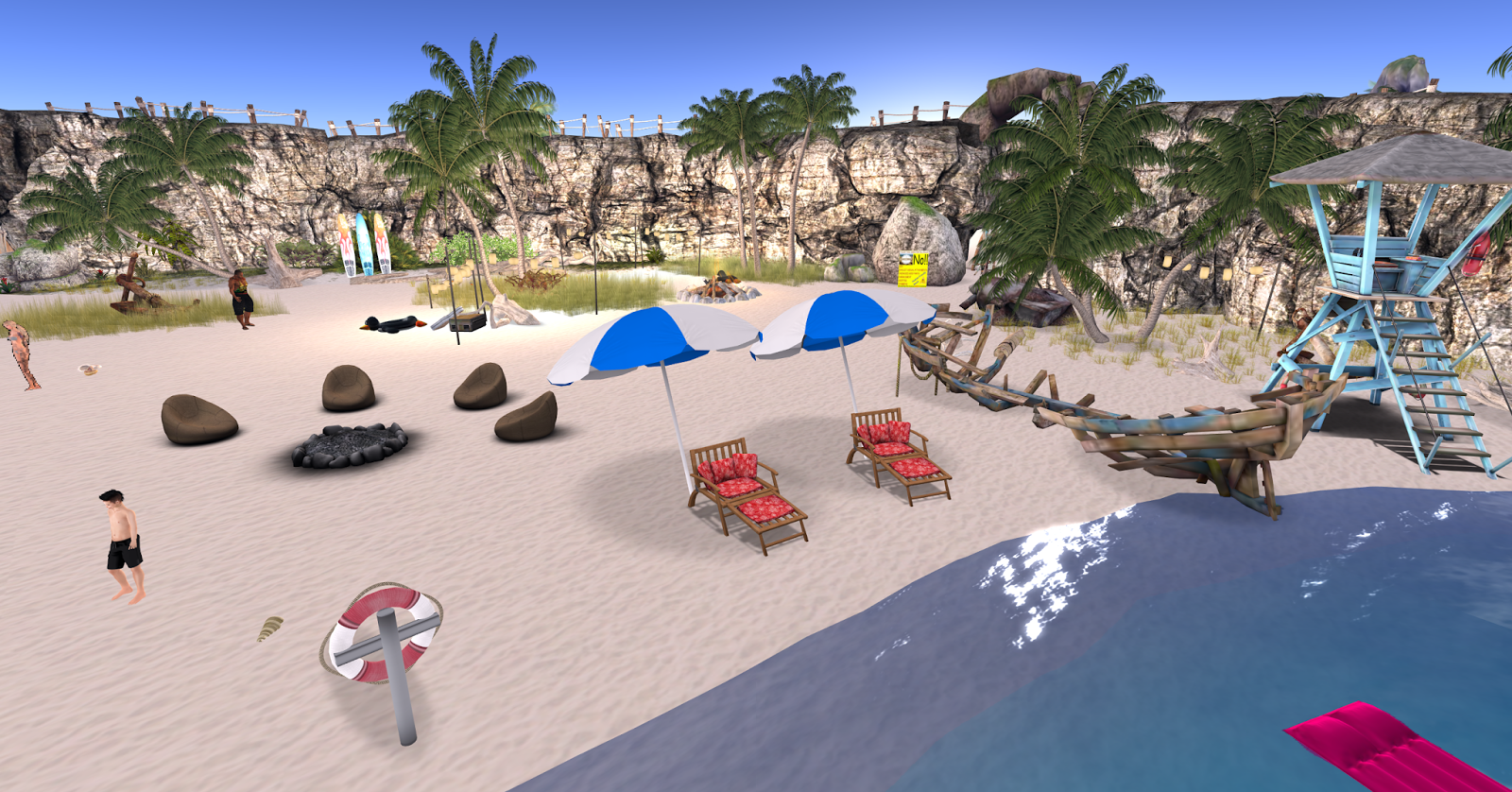 Finding a nice beach you can take your family to can be hard in Second Life as most are sex beaches. However if you do find a good beach its usually deserted and no one around. So if you are like me and want a mix of both then Golden Sun Beach and Shops may be the ideal one for you.